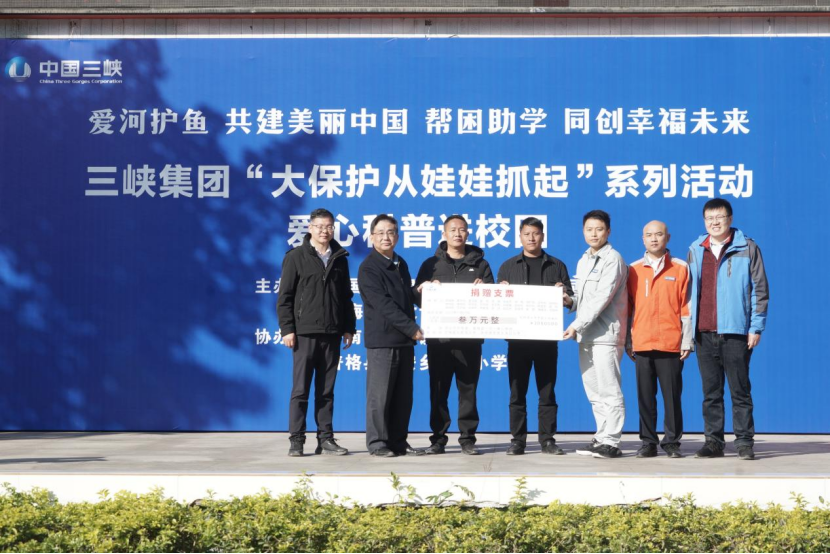 科普宣傳活動后,三峽建工團(tuán)委、上海院團(tuán)委聯(lián)合向松新鎮(zhèn)小學(xué)送去愛心捐款和學(xué)習(xí)體育用品,讓孩子們在感受社會關(guān)懷的同時,在心中播下守護(hù)家鄉(xiāng)生態(tài)的種子。