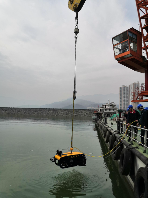 ▲ 1800米纜水下機器人在三峽電站副壩準備入水開展檢查
